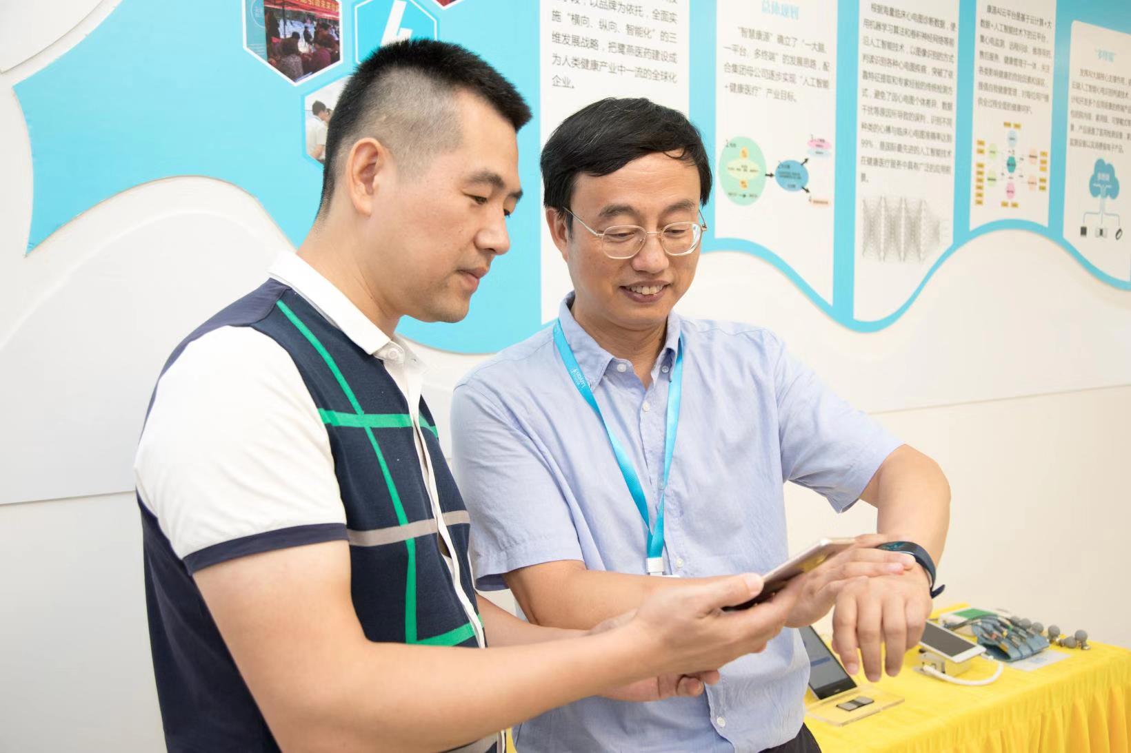 不過,在今年的第十六屆“6·18”中國·海峽項目成果交易會上,鷺燕醫(yī)藥旗下福建省康源圖像智能研究院(以下簡稱:康源研究院)讓人們足不出戶查心電圖成為了現(xiàn)實。經(jīng)過近兩年的沉淀,康源研究院成功研發(fā)出了“人工智能心電圖識別判讀系統(tǒng)”,并適時推出了一款名為“AI心手環(huán)”的應(yīng)用產(chǎn)品。只要戴上這個手環(huán),將手指夾在手環(huán)的觸點(diǎn)上,打開手機(jī)APP,就會實時顯示心電圖,血壓、心率一目了然,數(shù)據(jù)傳輸?shù)皆贫送瓿膳凶x后,還會得出健康建議反饋給用戶,儼然就是一個便攜式家庭智能醫(yī)生。